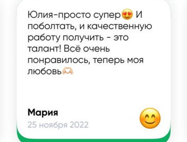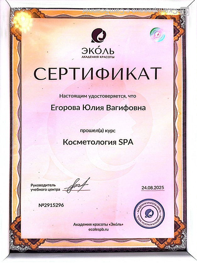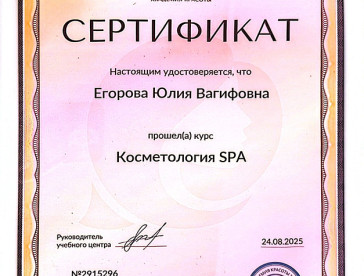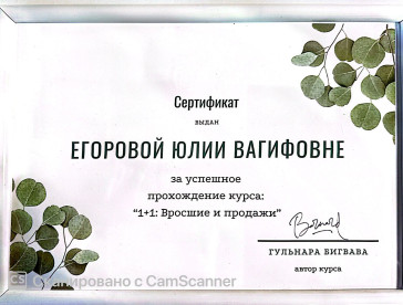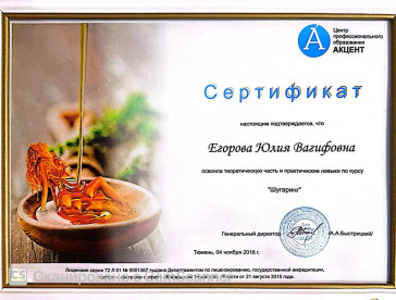- Прошла обучение в городе Тюмень в центре образовательного профессионального образования «Акцент»